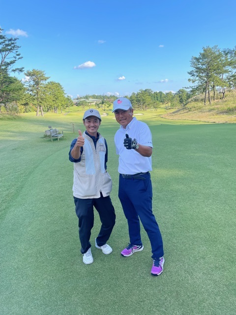 1番447yミドルは、ドライバーは左へ。隣から25度のuでナイス位置へ戻す。52度で3mに。これを沈めてナイスパー。同じくナイスアプからM.Oさんもパー。