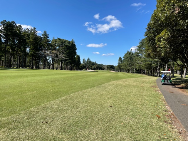 9番338y林間調の左ドッグのミドルは、ドライバーはナイス。52度で10mに2オン。無難にパー。