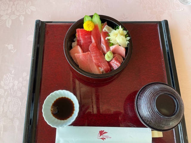 ランチは浜野の2大名物のハンバーグとまぐろの中からまぐろを食す。まずまずグー。