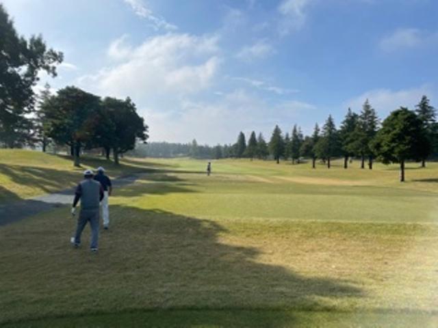 到着後、私はハムエッグを食しながら、同業の4名でレストランで談笑後、パターを転がしてアウトから。今日は青ティで進行します。今日は審査委員会副委員長のS.Aさんと同業の会員のK.Nさん、神奈川県のK.Fさんです。