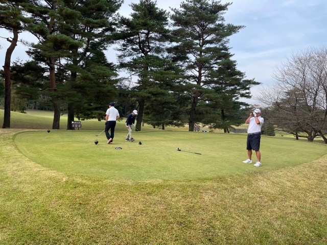 4番384yミドルは、ドライバーはナイス。6アイアンでなんとか2オン。が、ここから3パンチ。ガクッ。楽々2オンのタケさんが無難にパー。ここも素晴らしいアプから秀平さんが鉄パー。なんか5か月前より上手くなっておられる気が、、、。
