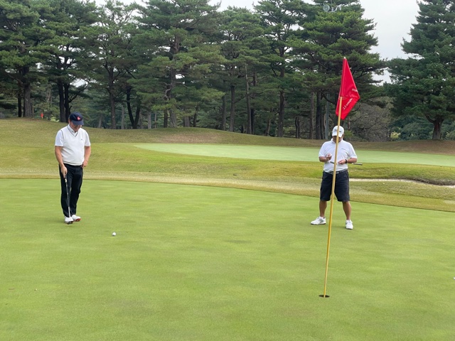 1番403yミドルは、ドライバーは竜巻球。6アイアンでレイアップ。52度での寄せは寄らず。ボギー。見事なパター力でH.Tさんが銀パーベスト獲得。