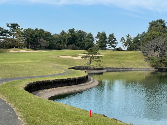 5番568yロングは、ドライバーは右へピュー。OB。打ち直しはまずまず。3uでナイスな位置へ。残り138yからどダフリ。お池にジャブン。同じ位置から8アイアンで3mに7オン。なんとか沈めて8とする。