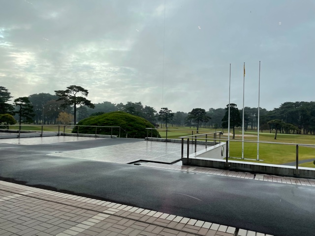 レストランで和朝食を頂きながら(ここのサバの塩焼きもなかなか)独りミーティングをしておりましたら、お三方が合流。楽しい4者ミーティングでした。T.Nさんからの「ゴルフの約束をしたなら、天候がどうであろうと、とりあえずコースまで来るのが流儀。で、あまりに酷いようなら今日はごめんなさいも止む無し」の御言葉に、私は頷きました。