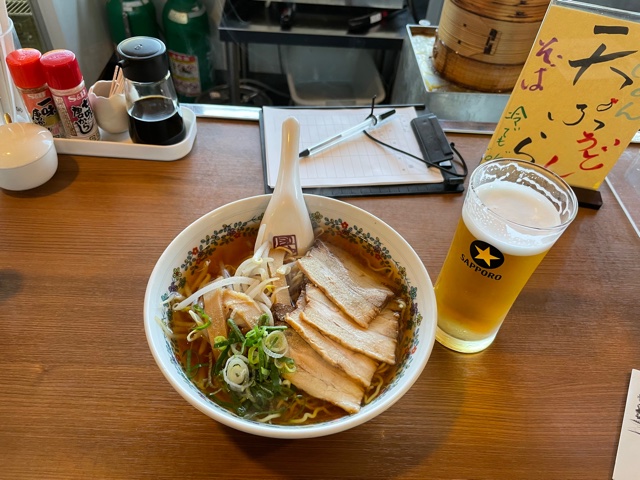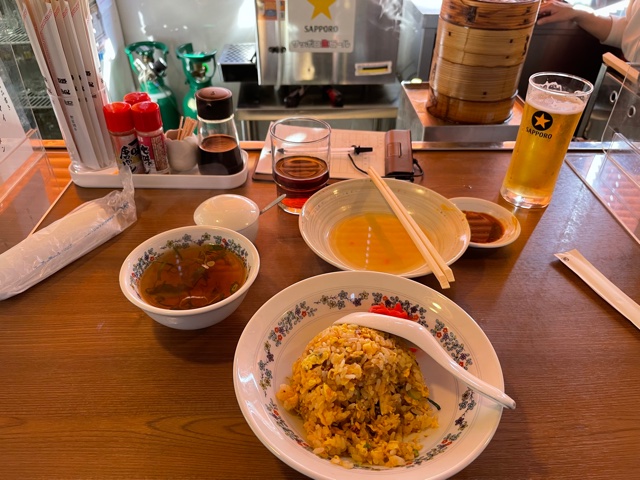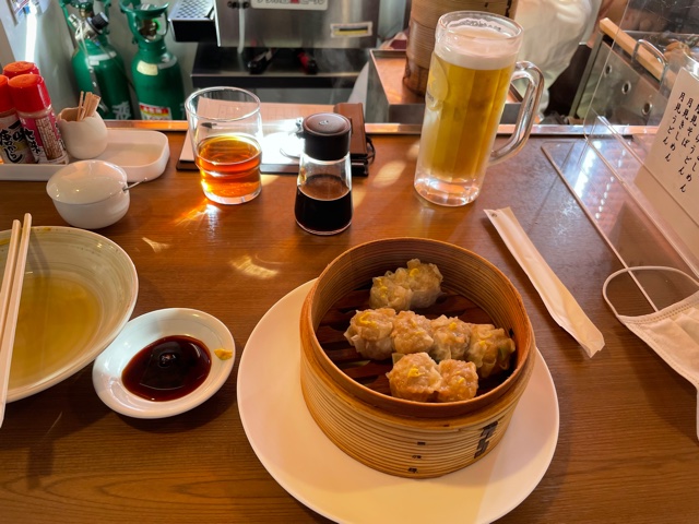 絶好のゴルフ日和です。到着後、10番横の茶屋でまずは生ビールです。で、つまみはおでんから行きます!それからシューマイ、チャーハンと参ります。ここのメニューには一切価格が出ていません。時価とのことです(笑)。