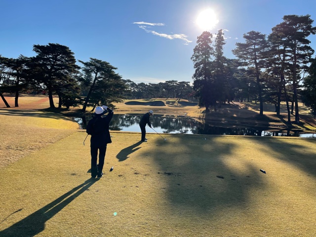 霞の感想・・・・今日は青でしたから昨日と500y違いましたので、まだ戦えましたが、黒は長いです。しかし、状態が良いですね~。目土が完璧。シルバーのカップで皆で目土するんですが、これは本当に素晴らしい習慣です。霞の東はグリーンが面白いですね。