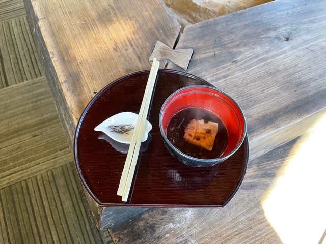 ここでジュンクラ恒例のぜんざいタイム。温まる~。昆布が最高ですね。