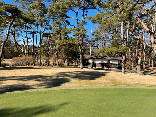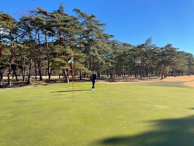7番435yミドルは、ドライバーは左ラフへ。6アイアンでのセカンドが竜巻球。ややこしい位置からのアプが寄らず。ここも素晴らしい転がしからH.Tさんが3連続のパー。