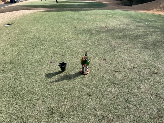 1番355yミドルは、ドライバーはまずまず。8アイアンでショート。ナイスアプでパー。1mに2オンの茨城県のT.Kさんがバーディ発進。素晴らしい。千葉県の縁のY.Yさんも無難にパー。