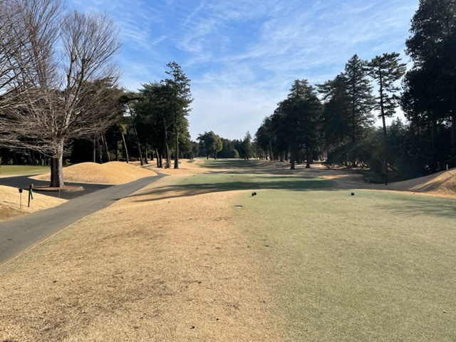 13番477y右ドッグのロングは、ドライバーは左ラフへ。25度のuが木に当たる。6アイアンでなんとか奥9mに3オン。無難にパー。