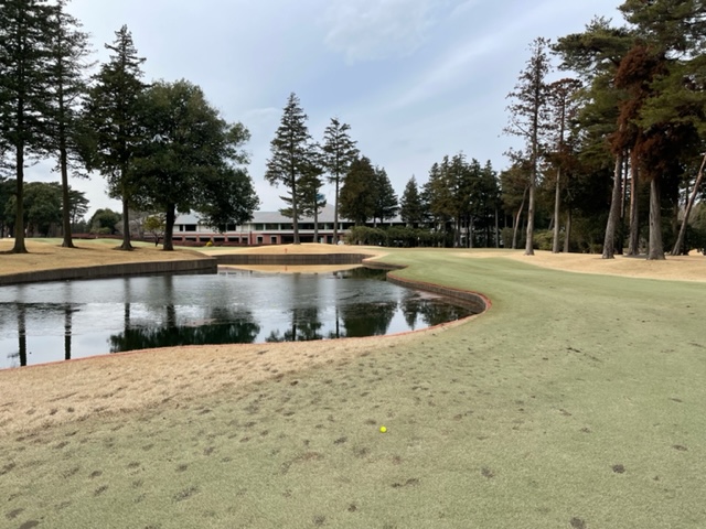 16番363yミドルは、ドライバーは竜巻球でお池にジャブン。あーあ。今日2個目のお池。9アイアンで3mに3オン。決められず。残念ボギー。見事なアプからメルウェイが鉄パー。