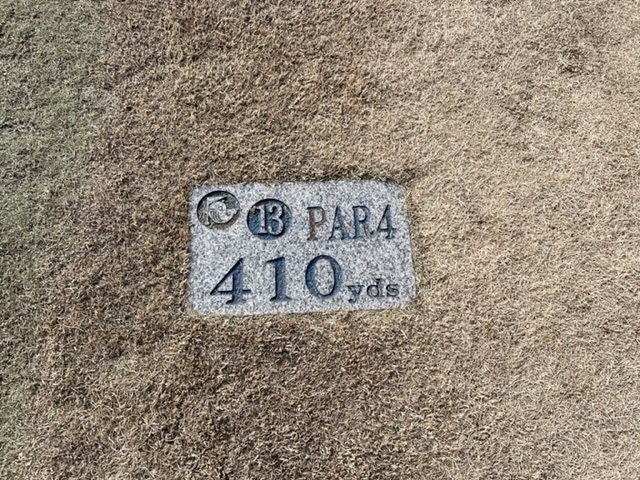 12番140yショートは、8アイアンで打つもほんのちょっとショート。ナイスアプで銅パー。1.3mを沈めてK.Fさんが銀パー奪取。