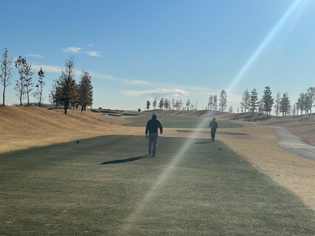 3番405yミドルは、、、、あれっ?3番ってロングだったんじゃ?伺うに飛球事故でミドルになったそう。なのでアウトはパー35になったそう。ドライバーはナイス。7アイアンで4mに2オン。無難にパー。2mに2オンのT.Yさんがバーディ奪取。