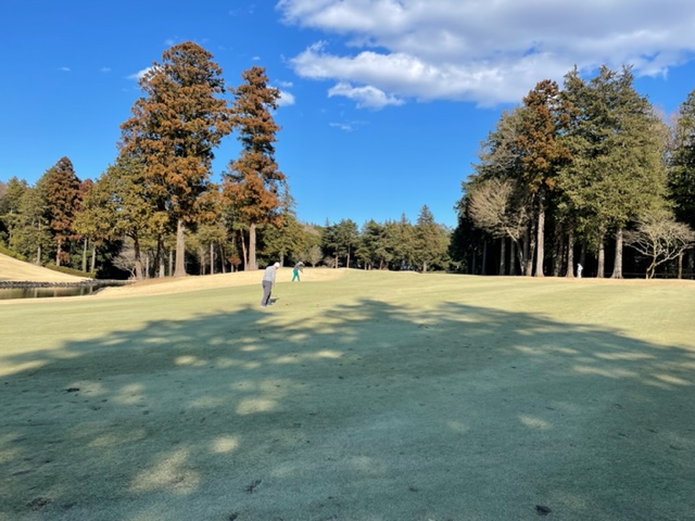 12番162yショートは、7アイアンで打つも竜巻球。3mに2オン。沈めて銀竿パー。しっかり1オンのS.Oさんがニアニアパー。Y.Yさんも銅パー。