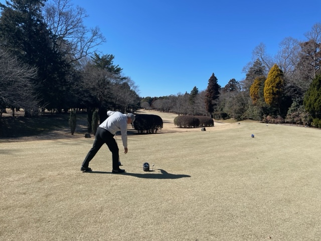 パターを少々転がして、アウトから。飛ばし屋のH.Tさんがおられるので、黒ティからです。