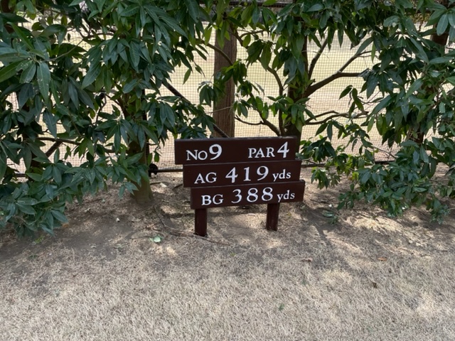 8番356yミドルは、ドライバーは右ラフへ。ライがまたまた悪い。PWでのセカンドはハーフトップ。ま、こんなもんでしょう。下りの難しいアプが完璧。パー奪取。4mを沈めたテツさんが今日2個目のバーディ奪取。素晴らしい。