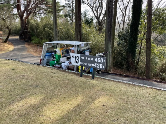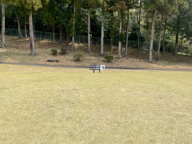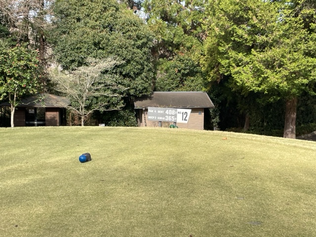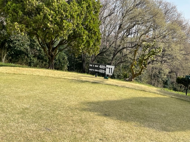11番489yロングは、ドライバーは右のラフへ。4アイアンで残り60yへ。52度で奥8mに3オン。無難にパー。見事なアプからM.Kさんがパー。