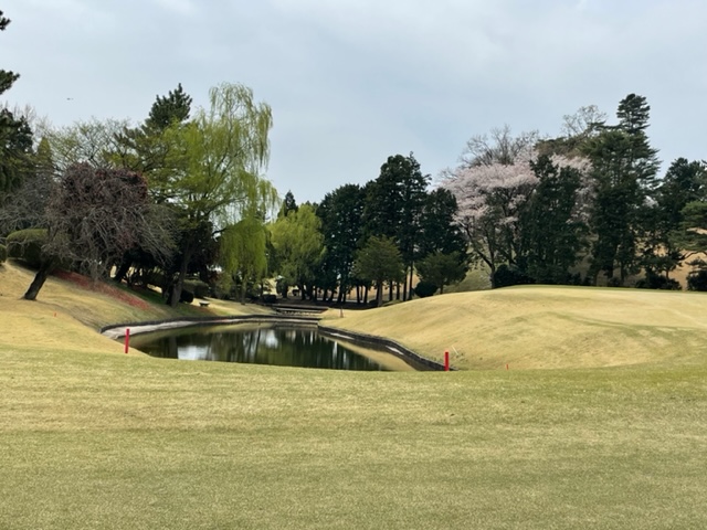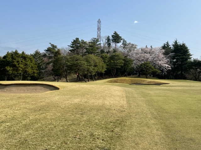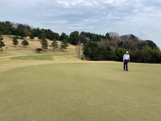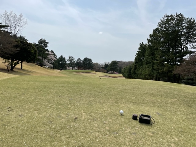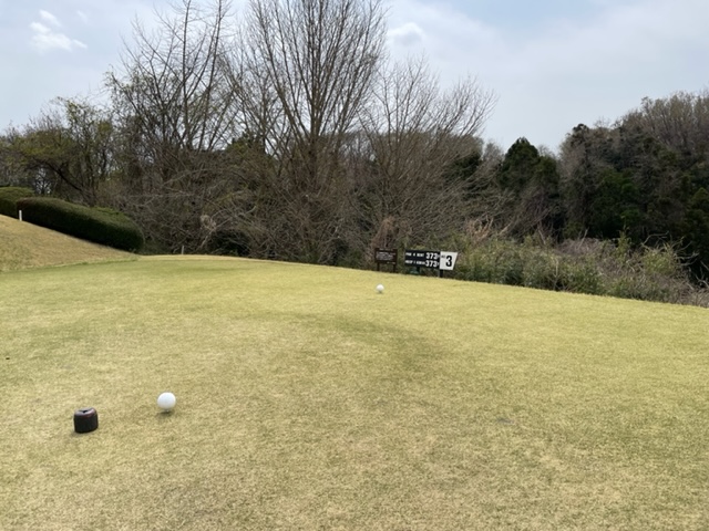 1番359yミドルは、ドライバーはまずまず。7アイアンでのセカンドはちょいと左へ。ナイスアプでしたが、パターが決まらずボギー。