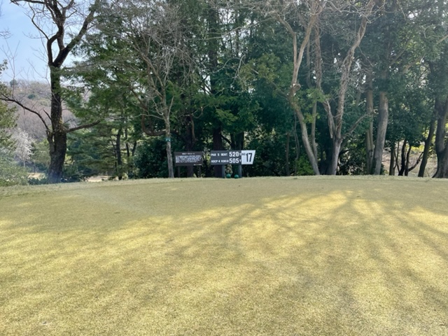 17番505yロングは、ドライバーはナイス。3wで2オンを狙うも左のバンカーイン。3mに3オンとしたがパターがショボ。