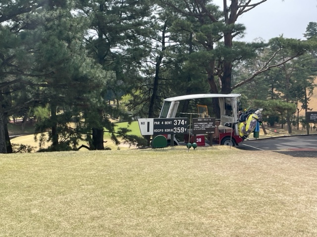 まずは、レストランへ行きますと、ミスターKさんと兵庫県のM.Tさんが歓談中でした。ハムエッグを食しながら歓談に加わります。8時スタートのインから。3サムです。前もってハンディの申請書提出がないと青はダメとのことで白から。今日は高麗です。