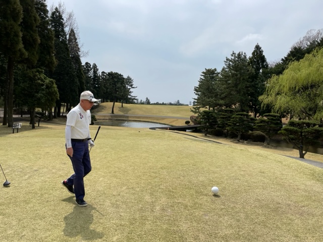 16番357yミドルは、ドライバーは右ラフへ。6アイアンで打つもショート。寄らず入らず。見事な2オンからM.Tさんが無難にパー。