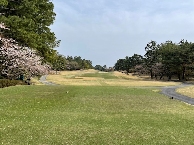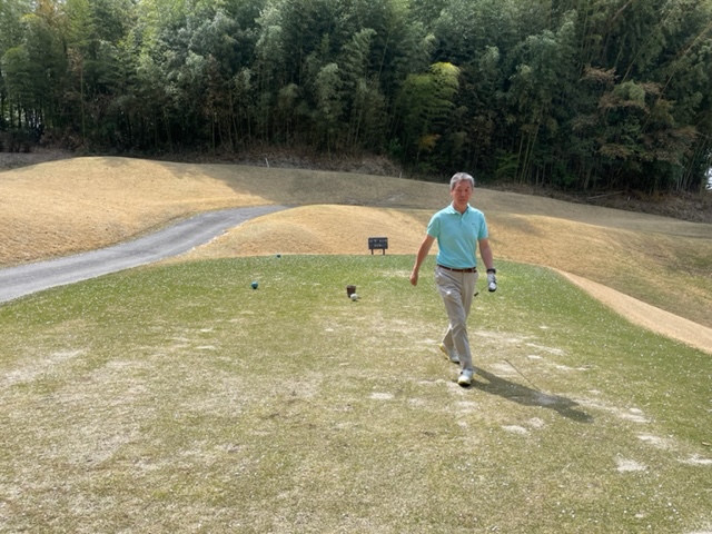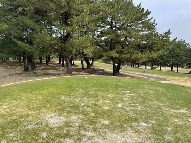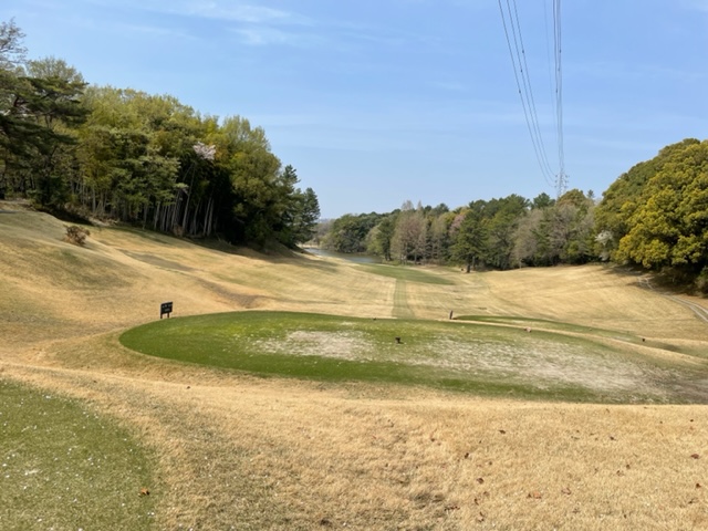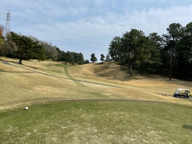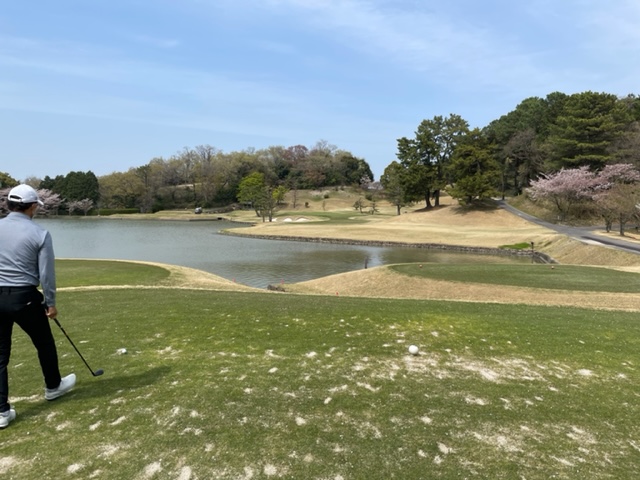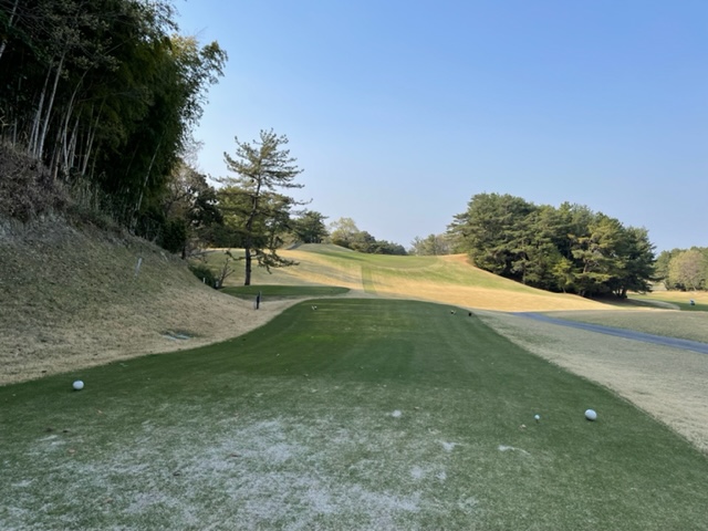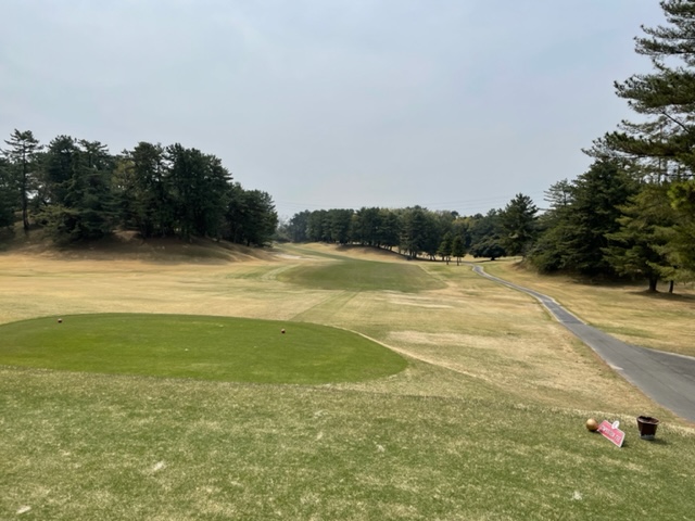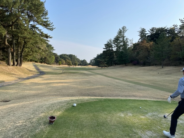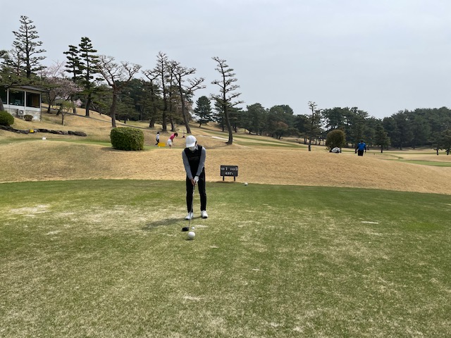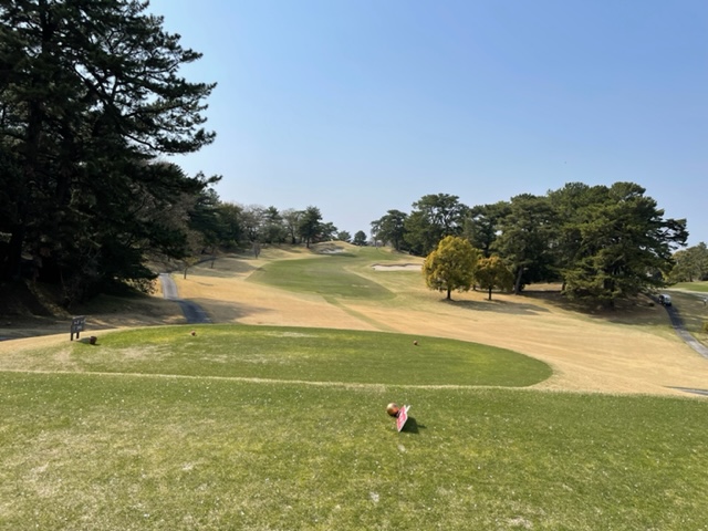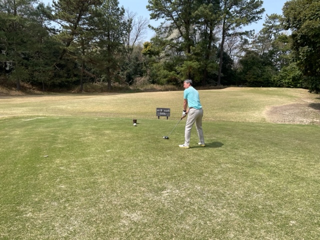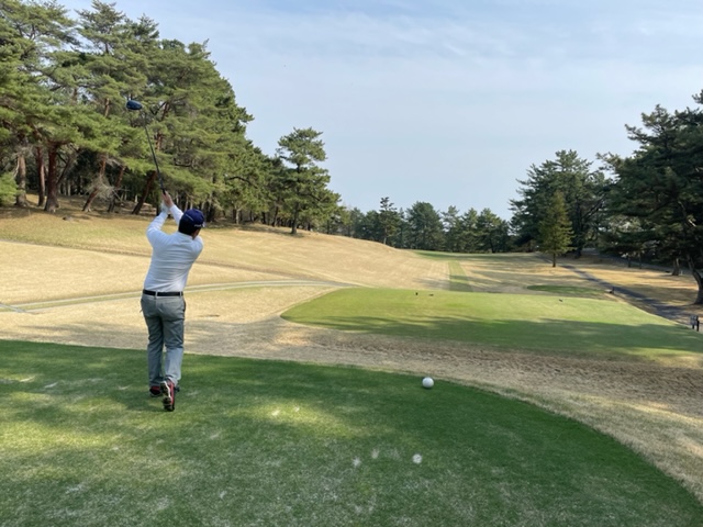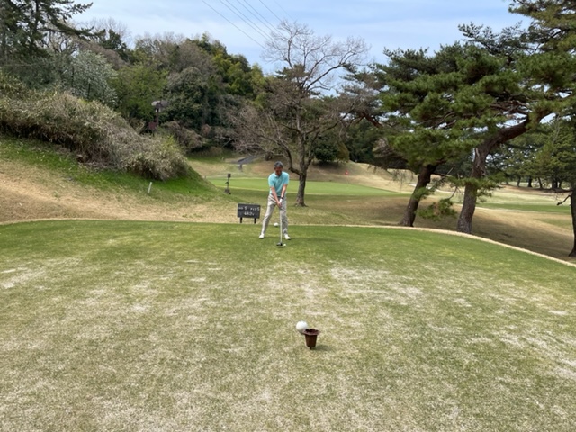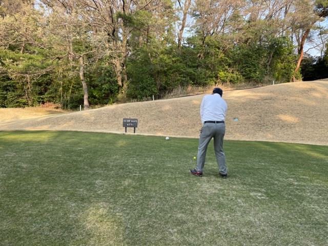 アウトから。ここはアウトインともにパー37でパー74のゴルフ場です。今日は白ティで参ります。