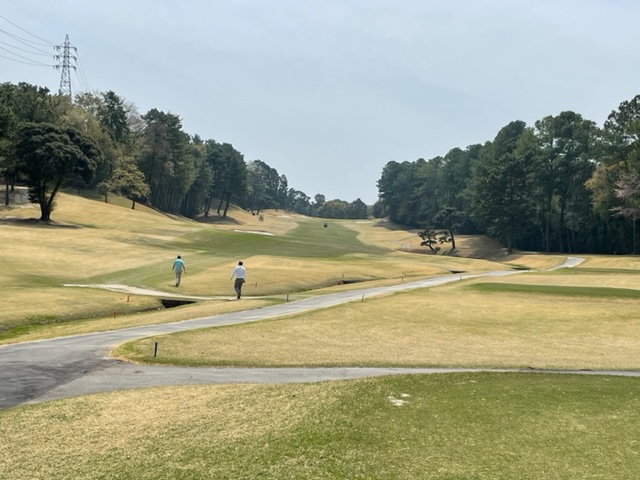 1番476yロングは、ドライバーは左へ。6アイアンのフックで残り110yへ。PWでの3打目がデカい。寄らず入らず。しっかり3オンのJ.Oさんが無難にパー。また、ナイスアプ&パターでM.Cさんもパー。