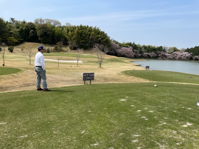 7番190yショートは、5アイアンで打つも右へ。ナイスアプでパー。見事な1オンからS.Mさんが無難にパー。