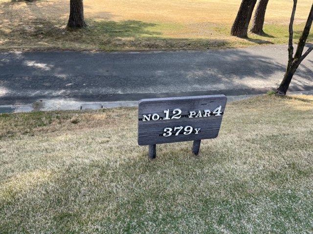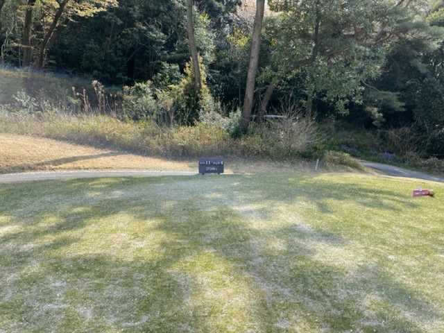 11番323yミドルは、3wで打つも竜巻球。セカンドが木に当たり左へ。3打目も乗らず。ついにダボ。しっかり2オンさせたS.MさんとM.Cさんが無難にパー。