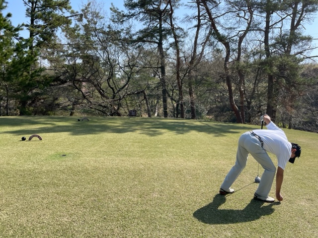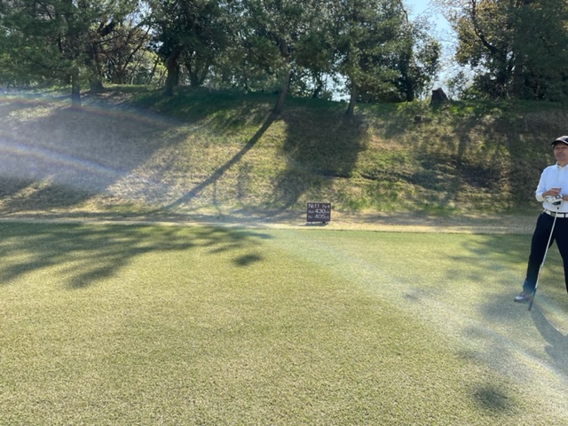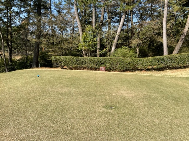 1番535yロングは、ドライバーは左へ。8アイアンでチョン出し。3wで残り55yへ。寄らず入らず。見事な3オンからM.Iさんが無難にパー。