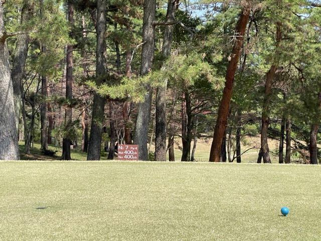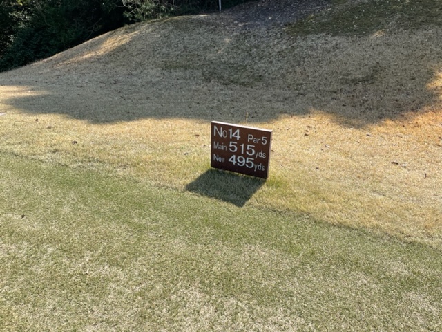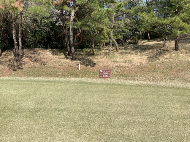 9番580yロングは、ドライバーは右ラフへ。3wで打つもチョロ気味の球。3打目を3uで打つも届かず。4打目がトップ。5オンの7となる。