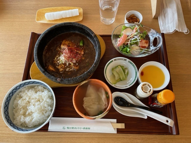 ランチは、お薦めの麻婆定食を食す。うん、これは味がいいね!同伴の茨城県のS.Wさんは「茨城県民からは、龍ヶ崎は9番10番11番の谷があるから好き嫌いが二分する。それに比べて総じて人気があるのが茨城である!平らだから。」とのことだった。なるほど。茨城県民の大方の方々の好みとは私の好みは違うようである。