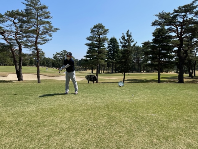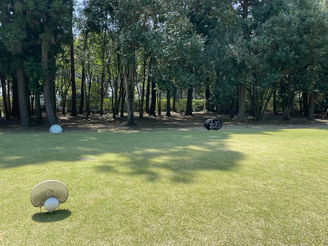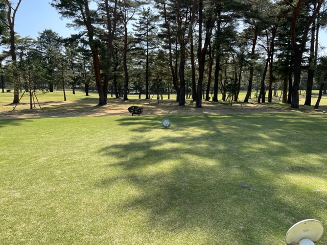 1番399yミドルは、ドライバーは左ラフへ。木があるので6アイアンでの強いフックで打つとなんと2オン。ラッキー。無難にパー。素晴らしいアプからS.Wさんがパー奪取。