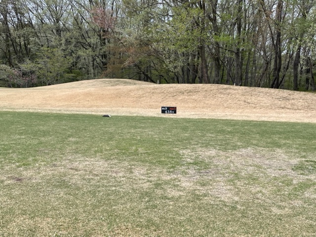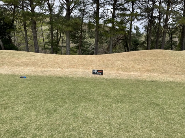 2番362yミドルは、ドライバーは左へ。6アイアンで打つもショボい球。3打目の60度がショート。ダボ。