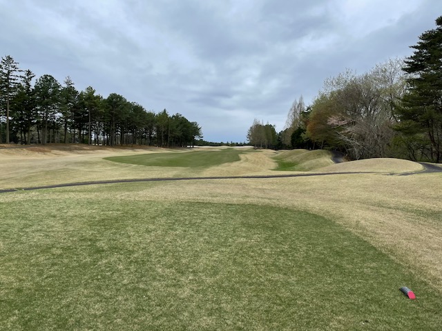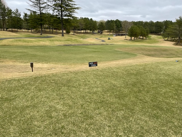 7番454yミドルは、ドライバーは左ラフへ。残り195y木越えを3wでのスライスで狙い、ピン奥17mに3オン。なんとか2つで行きパー。