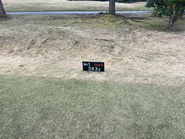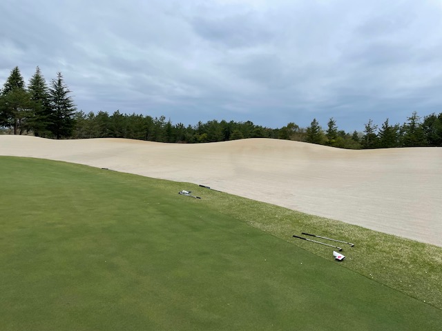 1番383yミドルは、ドライバーは左へ。25度のuでのセカンドはバンカーイン。乗らず。寄らずダボ。