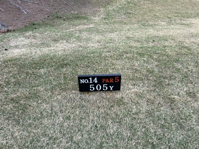13番464yと長いミドルは、ドライバーは左ラフへ。6アイアンで打つもチョロ。3打目を3u、52度で1mに。やっとのボギー。