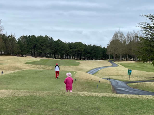 10番471yロングは、ドライバーはまずまず。3wでのセカンドは右に飛んで残り50yのバンカーイン。60度が完璧。2mに。沈めてナイスバーディ。1.7mに3オンされていたH.Fさんも放り込んでバーディ!