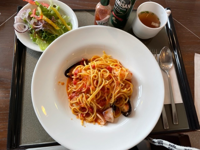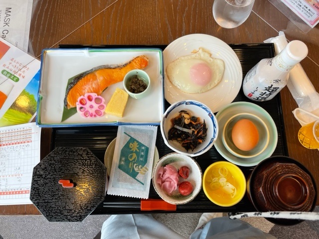6時半過ぎ、レストランで4者ミーティングです。今日の私はお腹がすいていたので、和朝食をいただきました。なかなか豪華です。