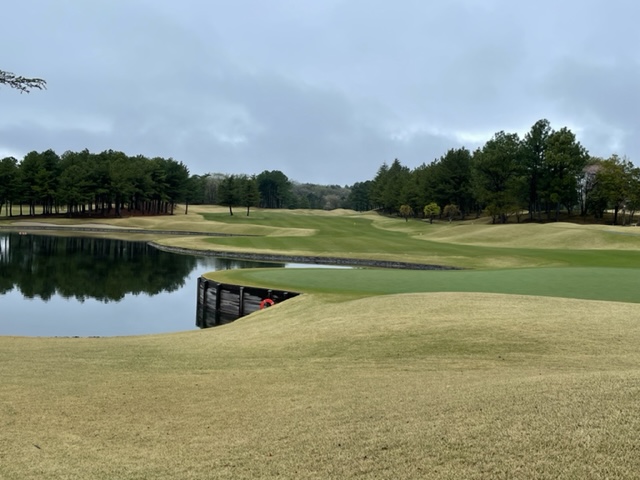 16番330yミドルは、ドライバーは右ラフへ。PWでピン右12mに2オン。最後の70センチを外して3パンチボギー。アホ。