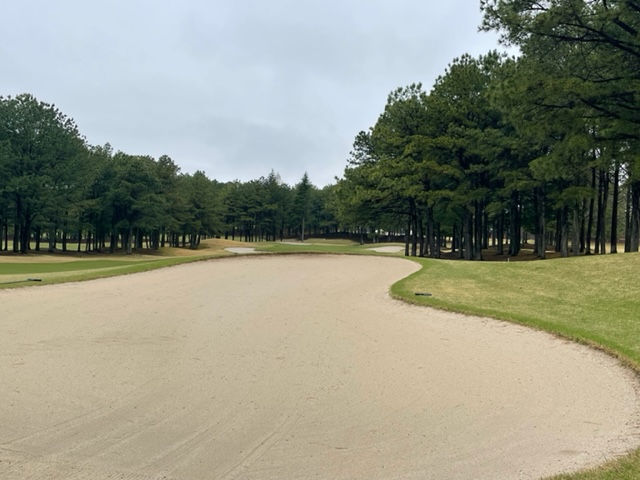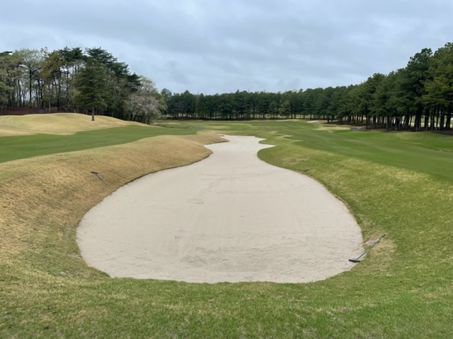 6番548yロングは、バンカーがセンターに長く伸びている珍しいホールですが、ドライバーはナイス。3wスライスもナイス。が、3打目の8アイアンがショート。寄らず入らずボギー。