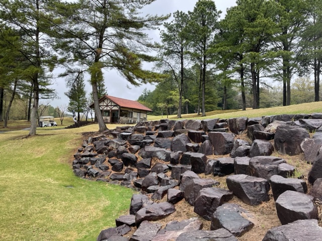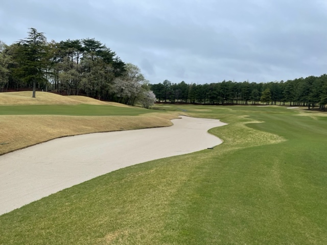 11番375yミドルは、ドライバーは右へ。このホールは奥にバンカーがズドーンと広がっている珍しいホールです。セカンドを7アイアンで打つもどダフリ。寄らず入らず。素晴らしいセカンドで2.4mに2オンさせたS.Yさんが残念寸止めパー。しかし、セカンドの乾いたあの音はプロっぽい音がしましたね!