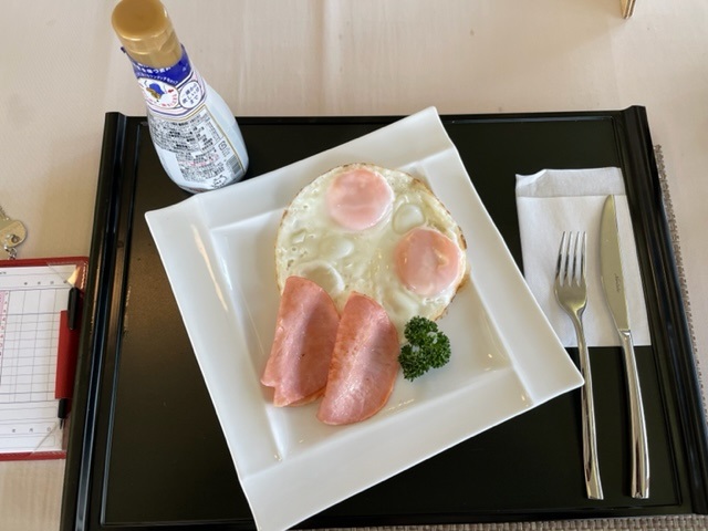 まずは、レストランへ。あらま~!縁の埼玉県のJ.Oさんが!おられるじゃありませんか?が、ご友人とご一緒と伺い、挨拶だけして、私は茨城県のM.Oさんと別テーブルへ。人はいるんだけど、オーダーが出来ません。やっとハムエッグをオーダー。そこに神奈川県のK.Fさんが登場。やはり、なかなかオーダーが出来ません。そこに埼玉県のS.Wさんも登場。以下同文です。昔の東松山では考えられないことです。