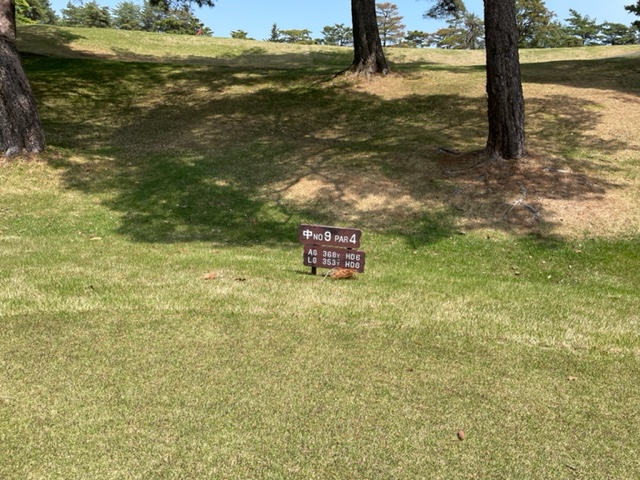 7番417yミドルは、ドライバーは左へ。3uで打つも全然ショート。アプは2mに。ようやく沈めてパー。ビッグドライブから楽々2オンのM.Nさんが無難にパー。