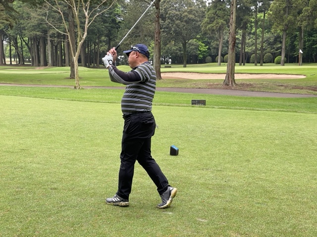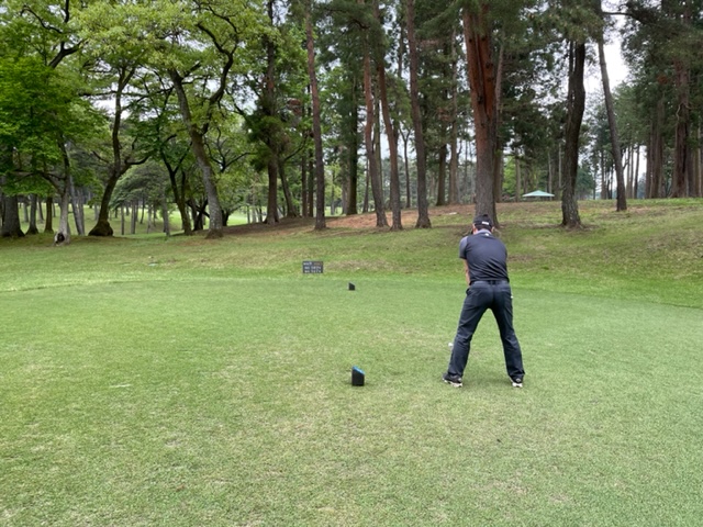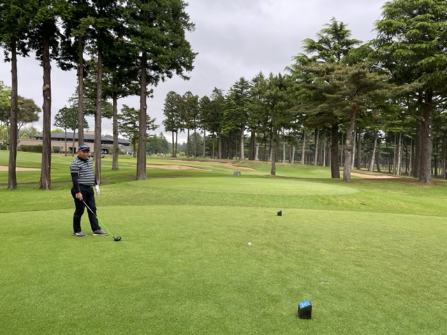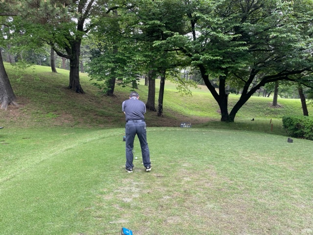西から。今日は青ティからです。お若い方々に交じってのゴルフです。