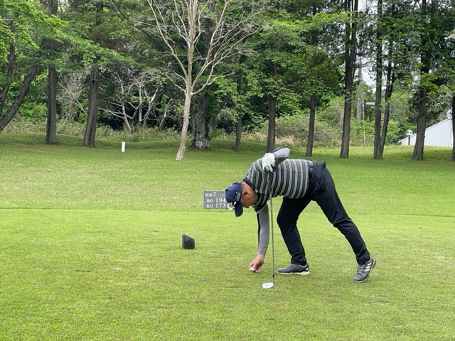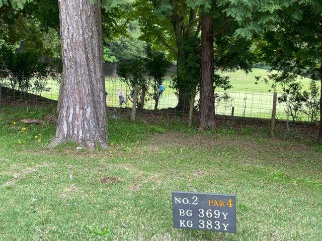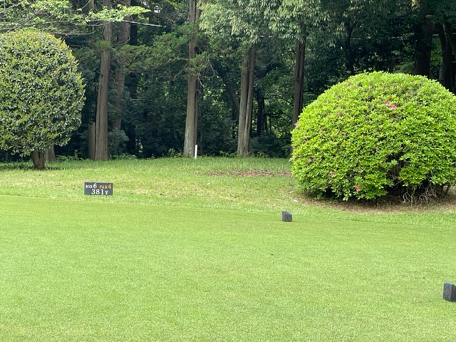5番361yミドルは、ドライバーは右へ。木に当たり木の根っこ。左打ちでラフへ。3打目が乗らず奥へ。4打目がチャックリ。なんと7を打ちます。見事な2オンからR.Tさんが無難にパー。
