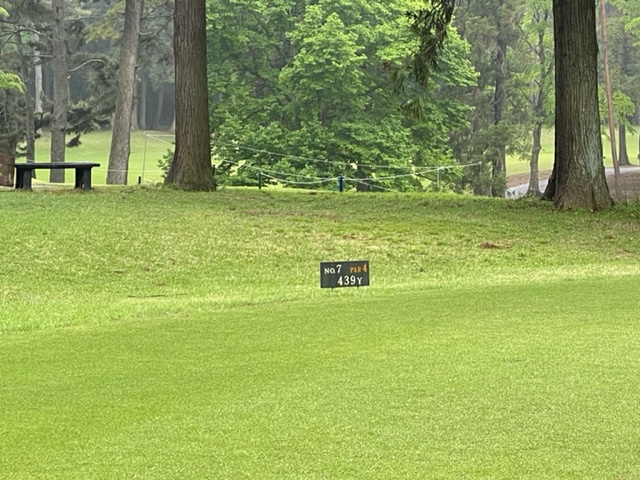 7番439yミドルは、ドライバーはナイス。3wでのセカンドはショート。寄らず入らず。