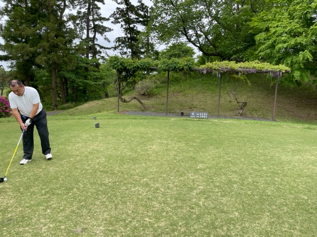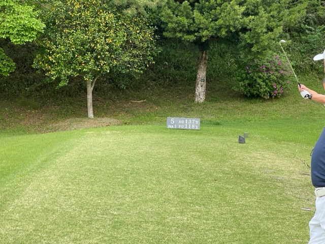 5番147yショートは、8アイアンで2mに1オン。放り込んでナイスバーディ。1.4mに1オンのM.Tさんが残念パー。5mに1オンのT.Nさんも無難にパー。