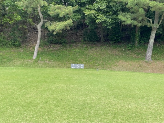 7番514yロングは、ドライバーはナイス。3u、8アイアンで左に外れる。も、なんとか寄せてパー。同じくナイスアプからT.Nさんもパーゲット。