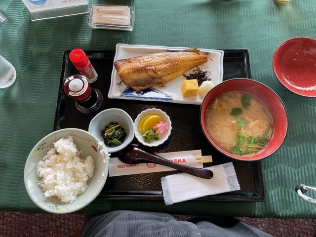ランチは、ほっけと豚汁を食す。なかなかグー。ランチはM.Tさんにご馳走になる。ご馳走様でした。